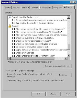 After this goto Advanced Tab and under security following options are unchecked.