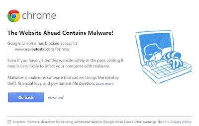 This warning may pop-up if you try opening in google chrome. This will make your site blocked for access by public and reduce site visibility in google search engine. Even there is an option to click on proceed with your own risk.
