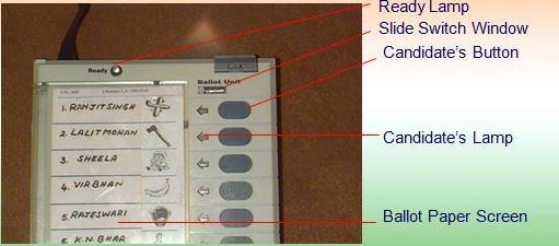 Candidate button is the button which is pressed by the voter. Masking tab is used to mask the candidate buttons which are not in use; ie if there are only 8 candidates the remaining switches from 9 to 16 are masked and cannot be operated