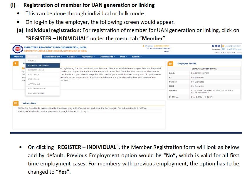 - Employer will thereafter be able to remit the dues through ECR for this linked UAN UAN generation new process