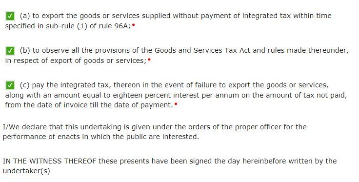 If you’re filing LUT, please read and select all the three checkboxes for accepting the conditions prescribed in Letter of Undertaking